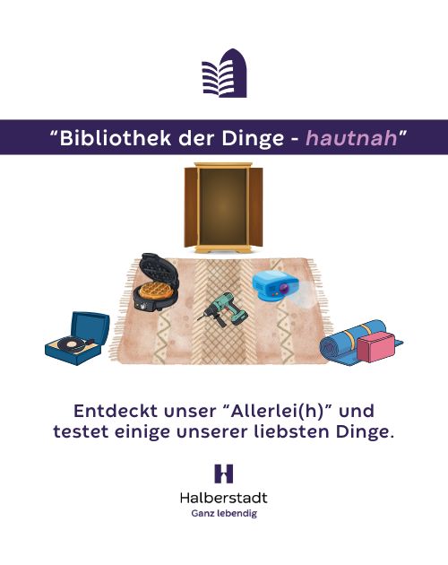 Seit einiger Zeit bietet die Stadtbibliothek Halberstadt unter der Rubrik „Allerlei(h)“ auch Alltagsgegenstände zur Ausleihe an.