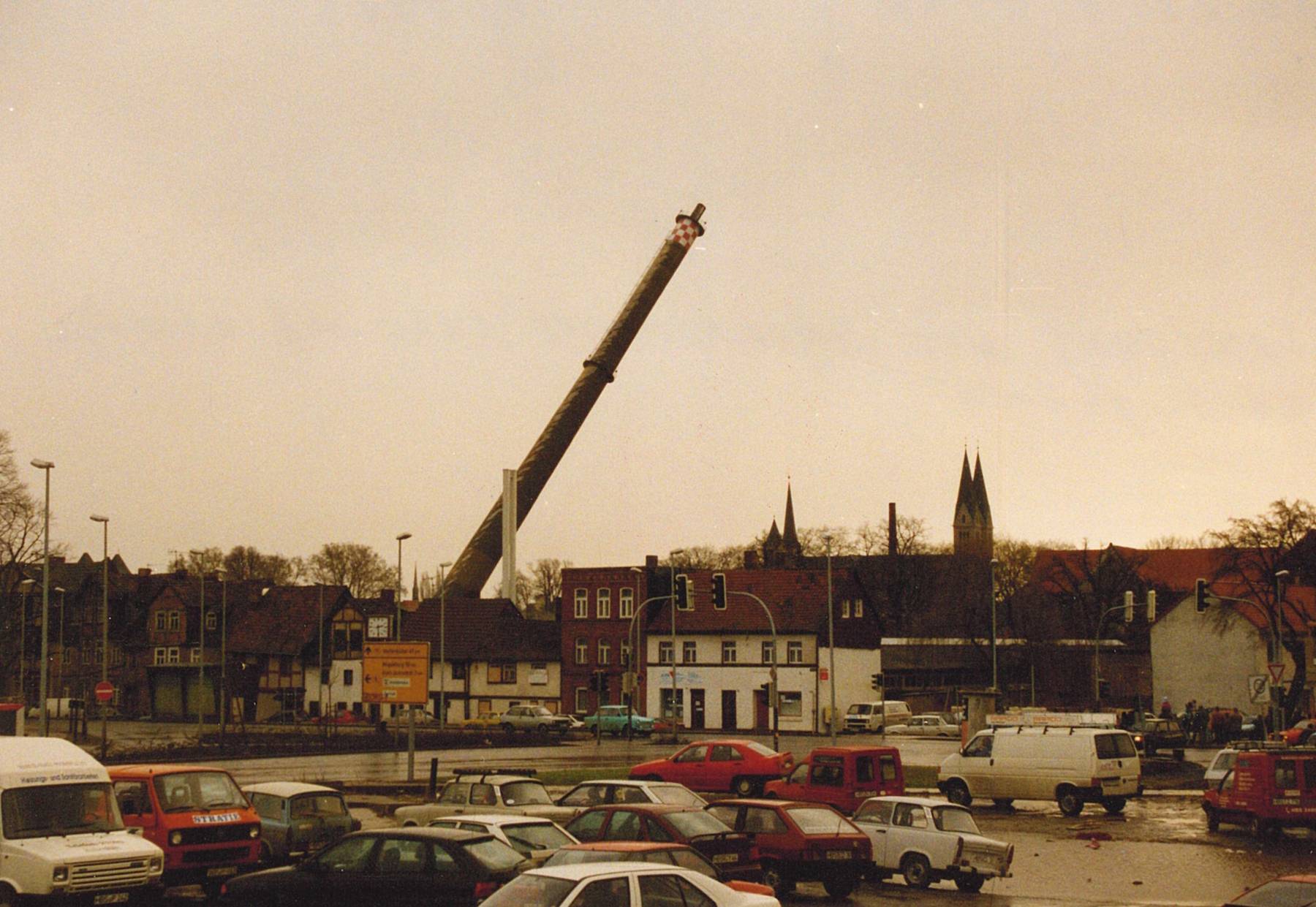 - Sprengung des Schornsteins der alten Zuckerfabrik Gröperstraße, 1997 ©Sammlung Städtisches Museum Halberstadt, Jo Lux
