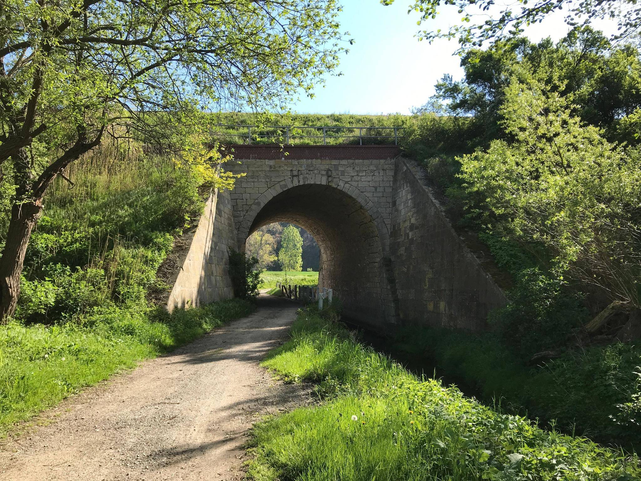 Die Echobrücke ist das bedeutendste Bauwerk der Eisenbahnstrecke Halberstadt - Blankenburger . Die Strecke wurde als Privatbahnen 1873eröffnet. Die Brücke ist der Durchlass für den Goldbach.