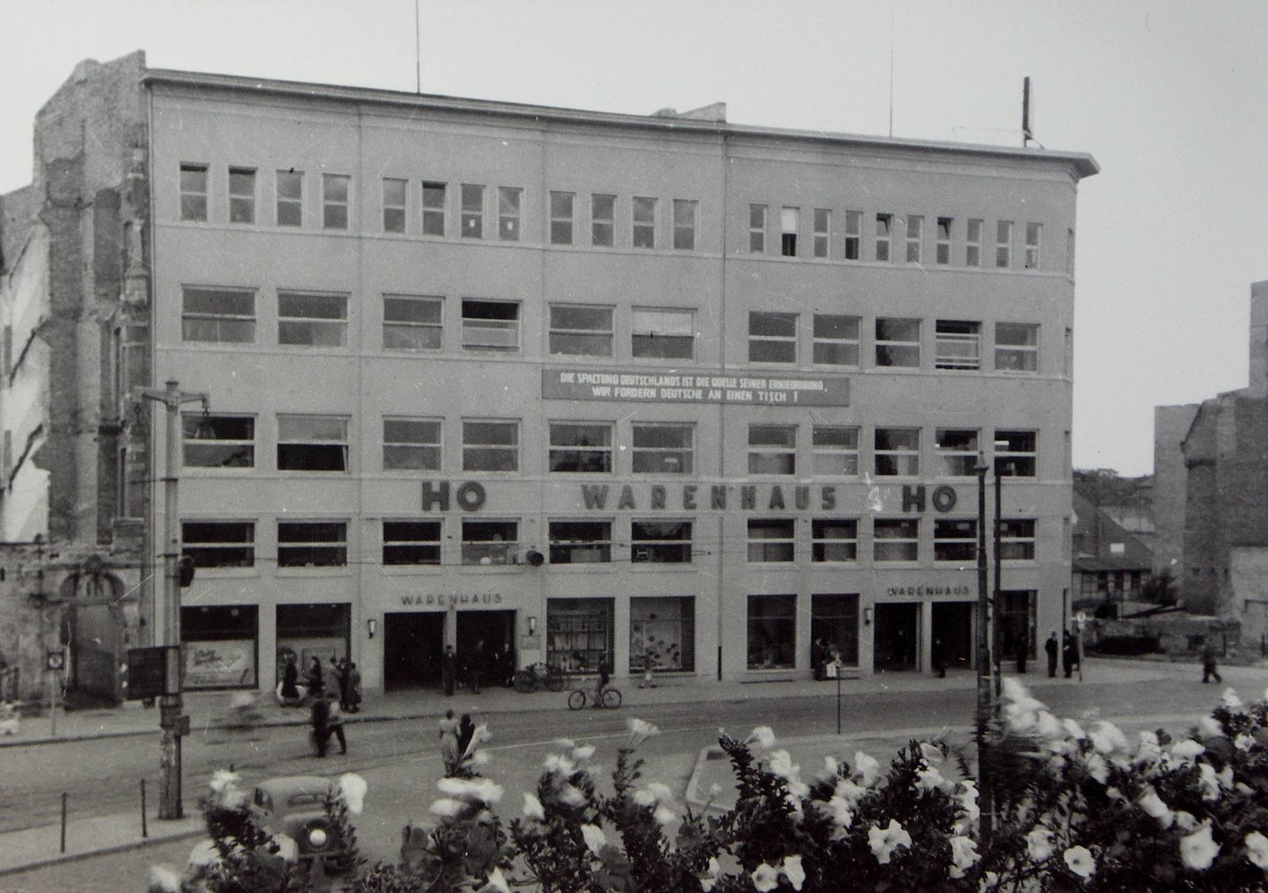 Am Fischmarkt eröffneten die ersten Geschäfte in Ruinen und Behelfsbauten. Das HO - Warenhaus entstand aus der Ruine des Hauses Breiter Weg 37, bekannt unter dem Namen "Café Westkamp". Am 3. Mai 1950 erfolgte die Eröffnung. Das angrenzende Haus, Breiter Weg 35/36 (Schuhhaus Tack), wurde anschließend ebenfalls zum Warenhaus ausgebaut.