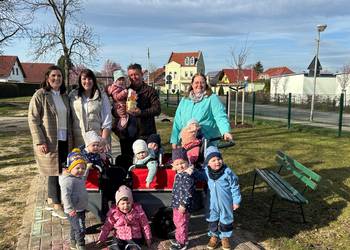 Die Kinder der Fuchs-Gruppe aus der Kita "Kleine Siedler" können nun größere Ausflüge unternehmen, dank der neuen Errungenschaft eines speziell angefertigten Krippenwagens. Dieser ermöglicht es selbst den Jüngsten, die Welt um sie herum zu erkunden, auch wenn ihre Beinchen noch nicht für weite Strecken geeignet sind.