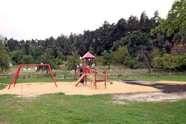 Der Spielplatz befindet sich im Herzen von Langenstein. Ein großes Klettergerüst lädt die Kleinen zum Toben und Baumeln ein.