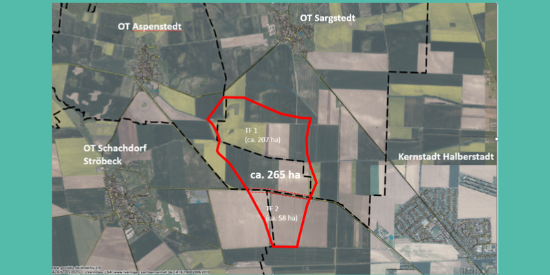 Die geplante Fläche umfasst rund 265 Hektar. Davon gehören 38 Hektar der Stadt Halberstadt.
