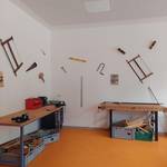 Die Hortkinder nutzen den Kopfbereich des Gebäudes mit einem Theater-, einem Kreativ- und einem Bauraum sowie einer Werkstatt.