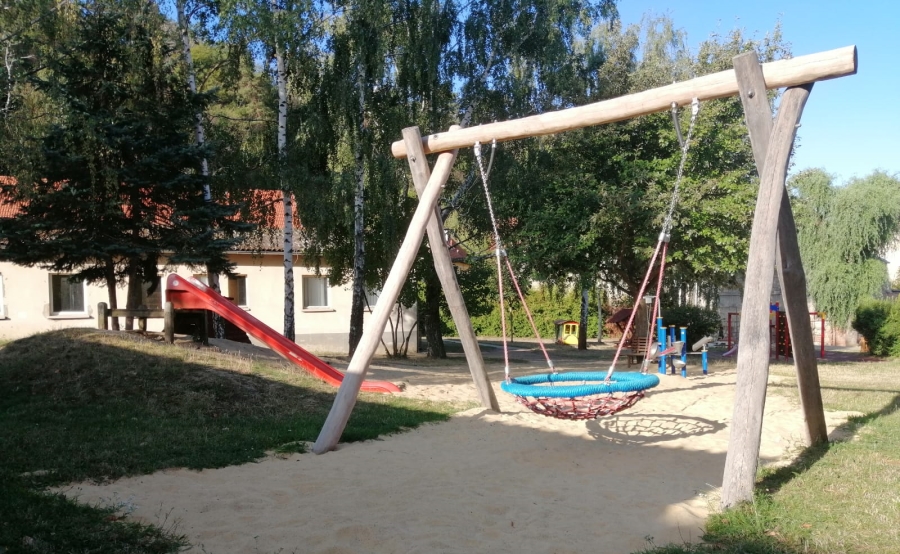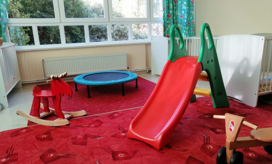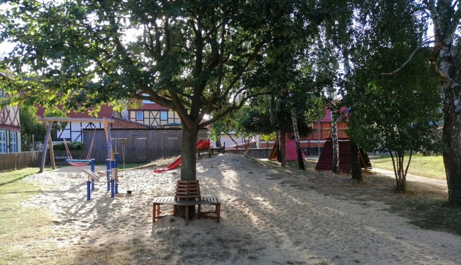 Die Betreuung erfolgt in altersgemischten Gruppen. Den großzügigen Spielplatz nutzen alle Kinder gemeinsam.