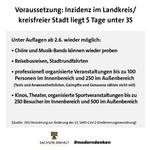 Folgende Regelungen gelten bei einer stabilen Inzidenz von unter 35 je 100.000 Einwohner: