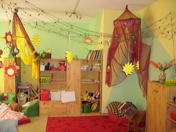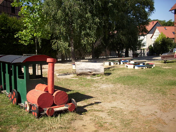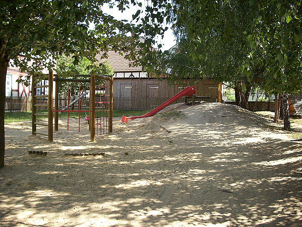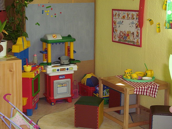 Die Betreuung erfolgt in altersgemischten Gruppen. Den Krippenkindern steht ein separater Bereich im Nebengebäude zur Verfügung. Den großzügigen Spielplatz nutzen alle Kinder gemeinsam.
