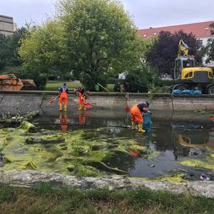 Wohngruppe „Kompass“ im Arbeitseinsatz am Springbrunnen Schützenstraße – OB Henke bedankt sich