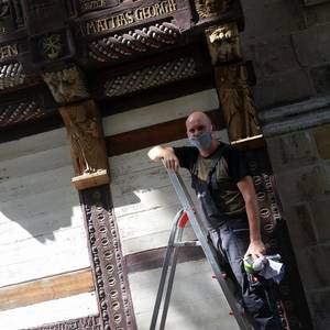 Reste der historischen Schuhhoffassade am Städtischen Museum komplettiert