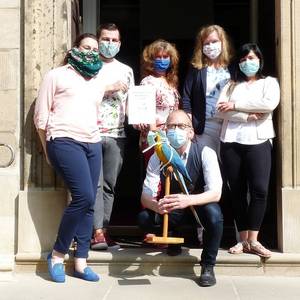 Gemeinsames Zeichen gegen Gewalt an Frauen: Aktionsfahne am Rathaus gehisst