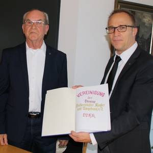 Übergabe der Chronik „100 Jahre Kegelsport in Halberstadt“ an OB Henke