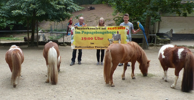 Am 24. Juli 2019 findet bereits zum zehnten Mal das Theaterkonzert im Tiergarten Halberstadt statt. Hierbei hat man die Möglichkeit einen wunderbaren Sommerabend genießen zu können, bei dem man die Musik des Nordharzer Städtebundtheaters sowie Natur und Tiere hautnah erleben kann. Als Zuschauer sitzt man gemeinsam mit dem Orchester des Theaters sowie einigen Tieren des Tiergartens in dem Ponygehege. Weitere Sitzmöglichkeiten werden auf dem Weg und um das Gehege geboten, gerne können auch eigene Sitzmöglichkeiten mitgebracht werden. In den letzten Jahren ist die Zuschauerzahl stetig gewachsen, wozu unter anderem das Orchester des Nordharzer Städtebundtheaters unter Leitung des Intendanten Johannes Rieger beiträgt, ebenso wie die Untermalung und Nähe der Tiere, vor allem der Papageien, welche die Atmosphäre durch Ihre ganz spontanen Tiereinlagen abrunden.