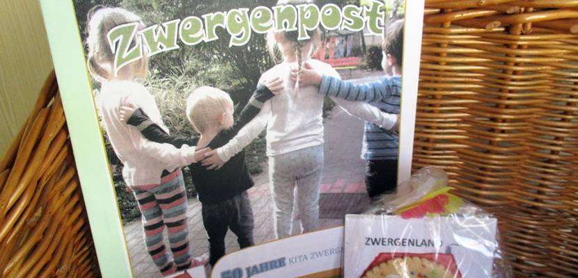 Bildunterschrift: Der „Zwergenland“-Jubiläumskeks und die Erstauflage der neuen Kita-Zeitung