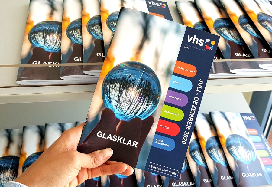 120 Seiten stark und mit einer Glaskugel auf dem Titel… Glasklar - das neue Programmheft für den Herbst 2020 ist da. Seit Mitte Juli wird das neue gedruckte Semesterprogramm an die über 80 Auslegestellen im Landkreis Harz verteilt.