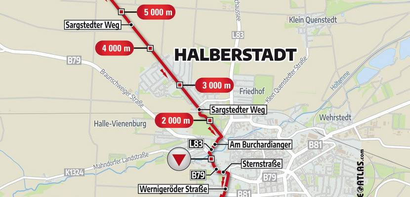 Abbildung: Karte mit dem Streckenverlauf im Bereich der Stadt Halberstadt