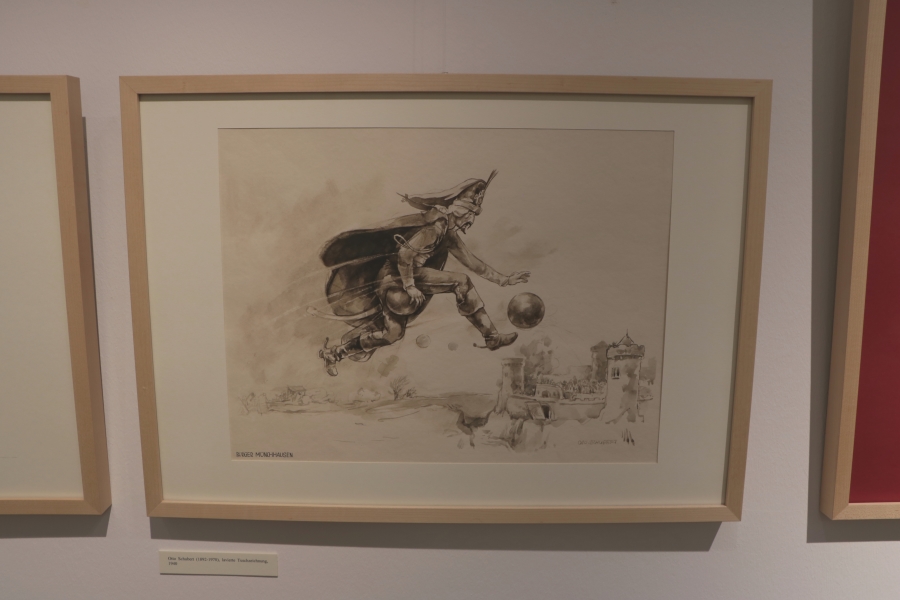 Die Ausstellung widmet sich Münchhausen dabei auf vielfältige Art. Das Phänomen Münchhausen wird in seiner Breite vorgestellt, etwa in der Medizin und Philosophie oder auch als Motiv bei Zigarrenbauchbinden, Schlüsselanhängern, Zinnfiguren etc. Im Mittelpunkt stehen jedoch Raspe und Bürger und vor allem die literarischen Geschichten und ihre Illustrationen. Erfahren Sie mehr über die bildliche Begleitung der Geschichten – vom Bilderbogen bis zum Comic. Staunen Sie über Bild-Ideen der Illustratoren und lassen Sie sich gefangen nehmen von der überbordenden Phantasie der Geschichten. Drei Münchhausen-Erzählungen werden genauer auf ihren philosophischen Gehalt hin befragt: das halbierte Pferd (Raspe), die Selbstrettung aus dem Sumpf und der Ritt auf der Kanonenkugel (Bürger). Zur Ausstellung wurde ein umfangreiches museumspädagogisches Programm ausgearbeitet, welches analog erst wieder bei Museumsöffnung angeboten werden kann. Das begleitende Veranstaltungsprogramm startet digital und wird – hoffentlich – ins Analoge überführt. Neben Führungen für Familien wird beispielsweise der berühmte Münchhausen-Film von Hans Albers aus dem Jahr 1943 nach einem Drehbuch von Erich Kästner gezeigt. Prof. Dr. Thorsten Unger formuliert neue Erkenntnisse zu diesem Drehbuch. Auch wird die Kasseler Raspe-Expertin Dr. Andrea Linnebach den Universalgelehrten Raspe vorstellen, öffentliche Führungen vertiefen weitere Aspekte der Ausstellung.