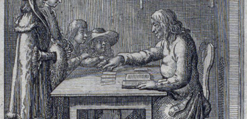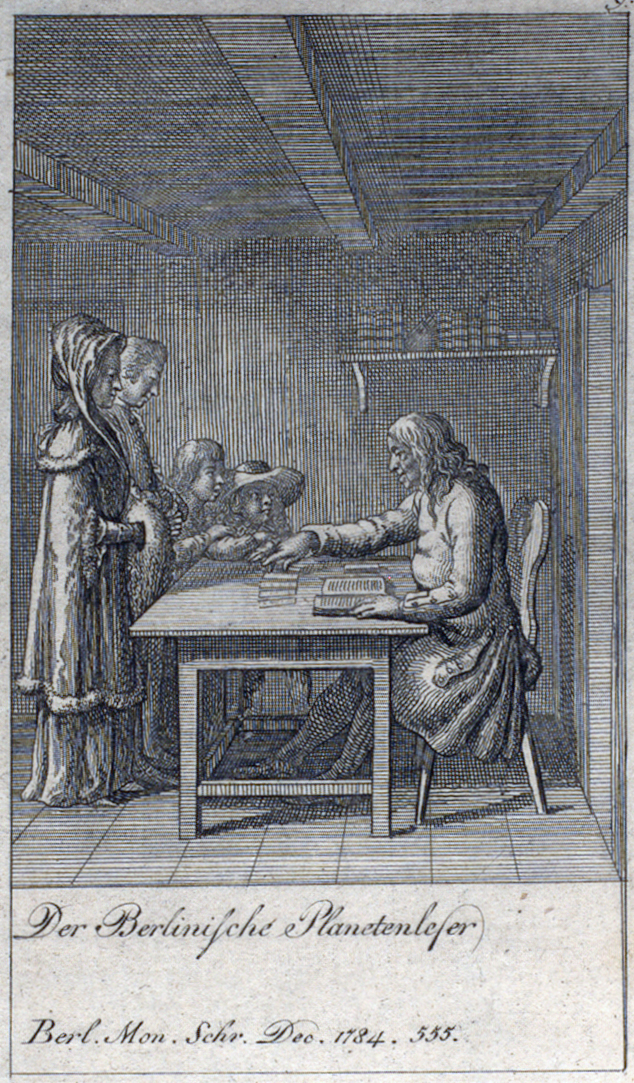 Bildunterschrift: Sterndeuter, der selbst bei der besseren Gesellschaft Berlins Zulauf findet. Radierung von Daniel Chodowiecki, 1788 (Gleimhaus Halberstadt)