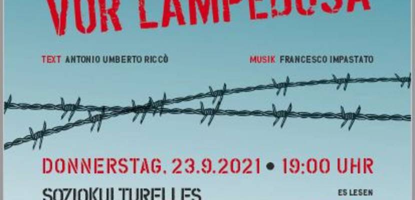 Jedes Jahr sterben zahlreiche Menschen bei dem Versuch über das Mittelmeer nach Europa zu gelangen. Am Beispiel einer der schlimmsten Tragödien im Mittelmeer, die sich am 03.10.2013 vor der Insel Lampedusa ereignete, berichtet die szenische Lesung, was Geflüchtete auf dem Weg zu uns erleben. Damals kenterte ein mit 545 Menschen völlig überladener Kutter, 368 von ihnen ertranken. Erzählt wird, wie die Inselbewohner, Touristen und Behörden auf die Katastrophe reagierten, Geflüchtete und Einwohner von Lampedusa kommen zu Wort.