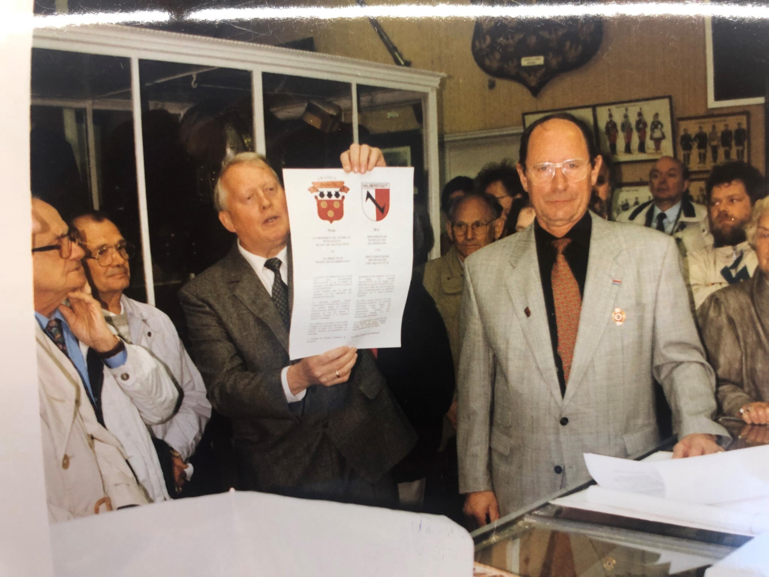 Die erste Fernexkursion des Halberstädter Geschichtsvereins führte 1995 nach Gravelotte, in das Museum zum Deutsch-Französischen Krieg von 1870/71 und nach Metz. Ein Teil der Halberstädter Reisegruppe im Museum Gravelotte. In der Bildmitte, Museumsdirektor Adolf Siebrecht und Bürgermeister Leon Müller, rechts.