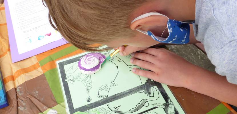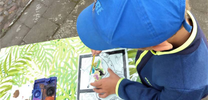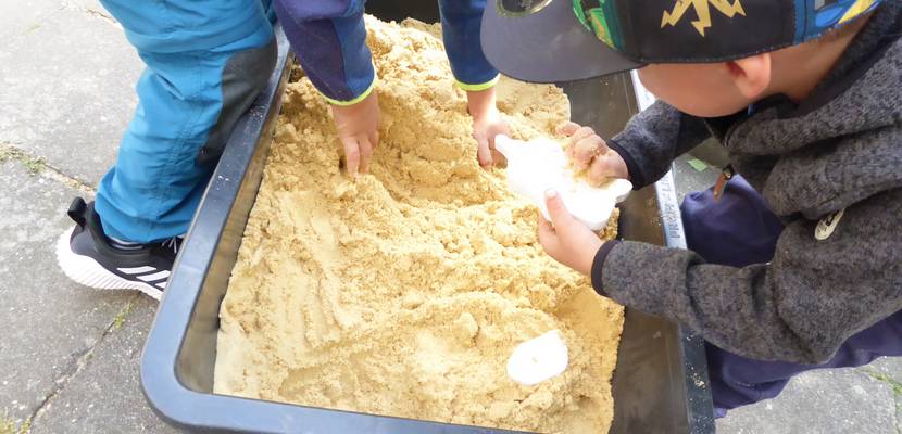 Besonderen Anklang fanden im Museumshof natürlich die selbst ausgegrabenen Schätze, Gipsfossilien im Sand versteckt, die dann auch noch eigens gestaltet und mit nach Hause getragen wurden.