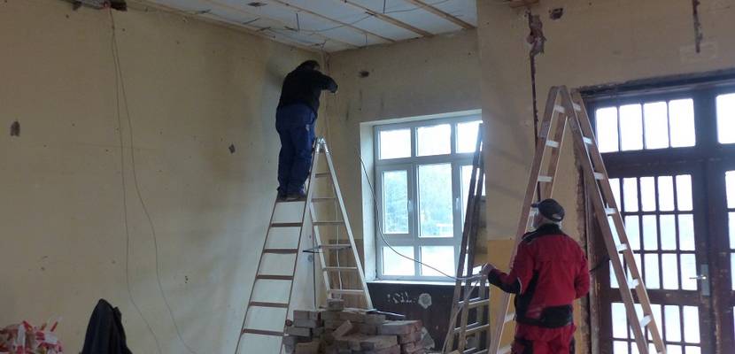 Am 27. September 2018 wurde der erste Spatenstich für die Sanierung der Grundschule Diesterweg feierlich vollzogen. Bis zum heutigen Zeitpunkt sind ein Großteil der Bau- und Installationsarbeiten erfolgt. Dach und Dämmung sind erledigt, der Außenputz am gesamten Gebäude ist fertiggestellt. Die Innenausbauarbeiten sind in vollem Gange: Derzeit wird der Fußbodenestrich in den Räumen und Fluren gegossen, die Fußbodenheizung in den Bauteilen Kinderkrippe und Kindergarten ist verlegt. Die Heizkesselanlage steht und ist funktionsbereit. Heizung und Sanitär sind vorbereitet. Elektroarbeiten laufen.