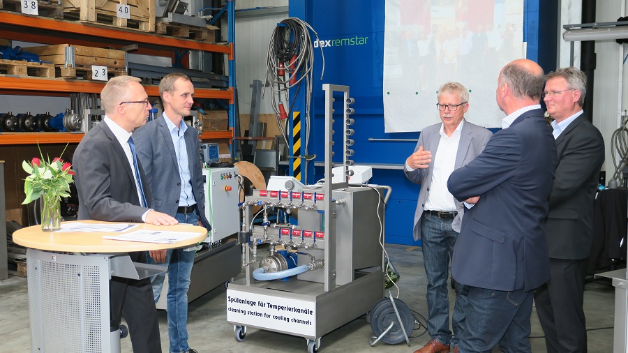 Kürzlich besuchten Oberbürgermeister Andreas Henke und Thomas Rimpler, Fachbereichsleiter Wirtschaft der Stadt Halberstadt, die Fimro GmbH im Gewerbegebiet im Ortsteil Langenstein. Das international tätige Unternehmen hatte zum 25jährigen Jubiläum eingeladen. Auch die Stadt Halberstadt gratulierte recht herzlich verbunden mit den besten Wünschen „für eine weitere beständige Entwicklung und einem großen Dank für das Engagement im Ort“. Das 1995 gegründete und seit 2007 in Langenstein ansässige Unternehmen produziert Temperaturanlagen für Gussmaschinen. Diese Druckluftanlagen kühlen oder erhitzen industrielle Erzeugnisse. Matthias Mrochen, Geschäftsführer der FIMRO GmbH, hebt beim Rundgang hervor, dass die Firma technische Beratung, Verkauf und Service in einem Paket anbietet, was ein Herausstellungsmerkmal des Unternehmens ist. Zudem werden regelmäßige Symposien für die Kunden durchgeführt. Die Fimro GmbH, die sich auch der Forschung und Entwicklung widmet, beschäftigt 35 Mitarbeiter.