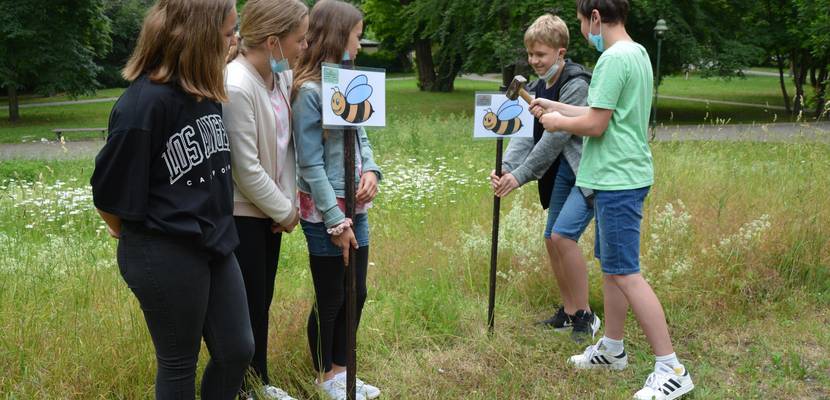 Weshalb nun die „neuen“ Sechstklässler die Pins in die Erde setzen, die ihre Vorgänger im vergangenen Jahr entworfen hatten. Im Rahmen ihres mehrjährigen Projektes „nachhaltig.mitmachen“ hatten Schüler viele Ideen, wie die Hinweise aussehen könnten.