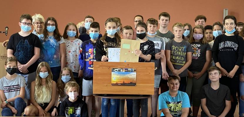 „Ihr seid nun selbst Teil der Geschichte unserer Stadt und im Jahr 2045 könnt ihr vielleicht mit euren Kindern, dabei sein, wenn die Zeitkapsel wieder geöffnet wird. Es ist schön, dass ihr mit euren Briefen dieses wunderbare Geschichtsprojekt unterstützt.“ mit diesen Worten bedankten sich Dr. Volker Bürger und Dr. Antje Gornig bei den Schüler*innen und Lehrer*innen der Europaschule.
