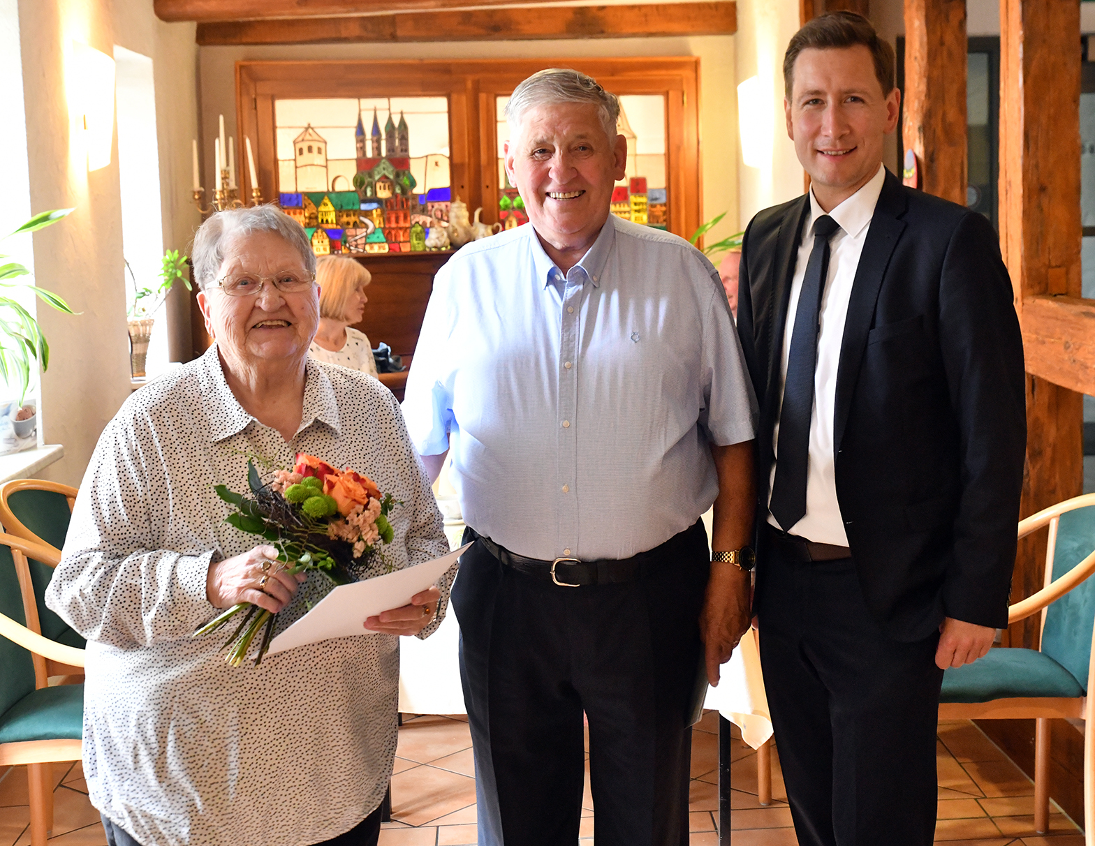 Oberbürgermeister Szarata wünscht den Eheleuten Görisch noch viele gemeinsame gute Jahre bei bester Gesundheit und freut sich, dass beide so offensichtlich „füreinander da sind“.