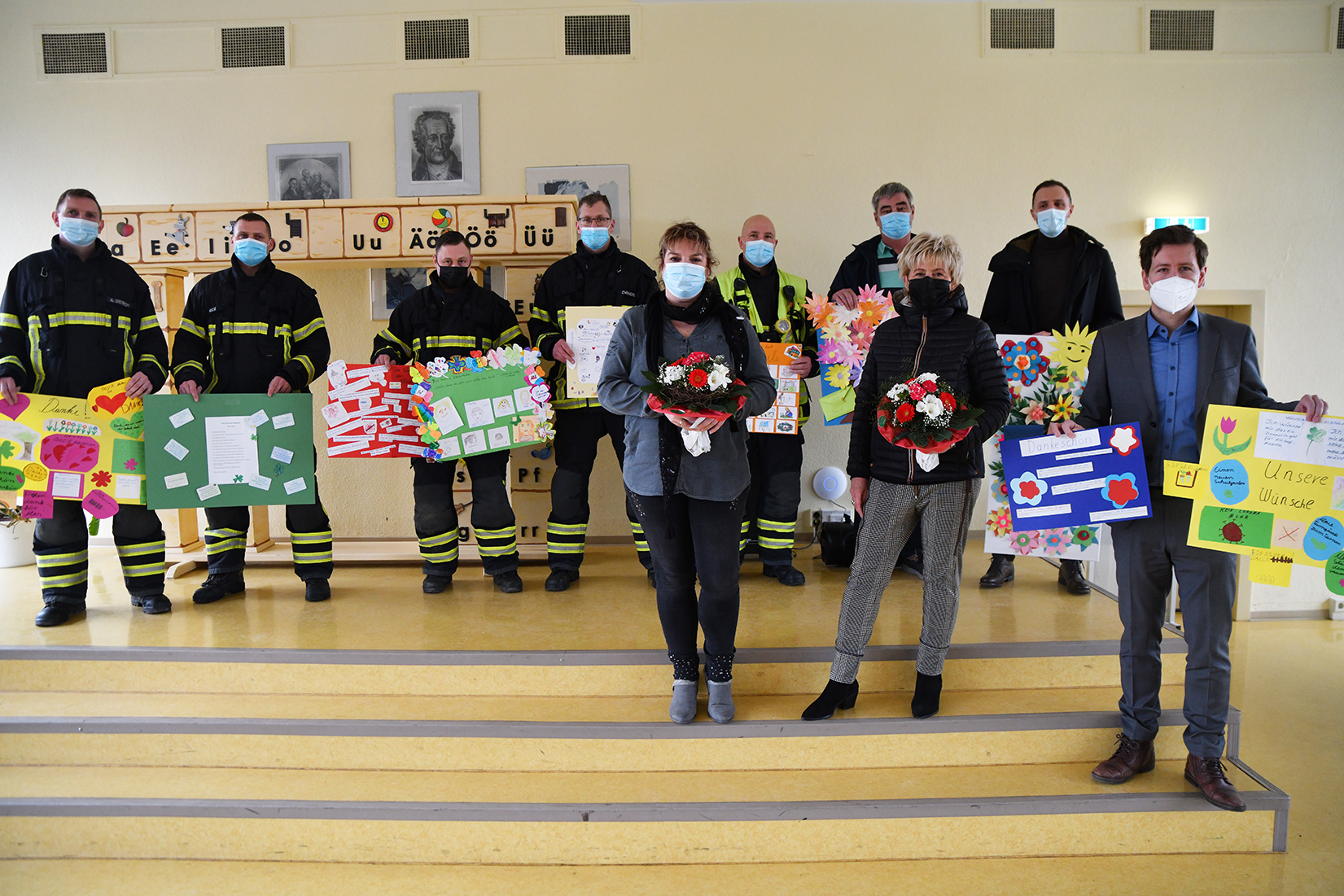 Nach dem erfolgten Rückzug habe ich es mir natürlich nicht nehmen lassen, die Schüler persönlich zu begrüßen und eine kleine süße Überraschung vorbeizubringen. In diesem Zusammenhang bedanke ich mich insbesondere bei Frau Pesselt, Bürgermeisterin der Gemeinde Vorharz, die unkompliziert die Räumlichkeiten zur Verfügung stellte, dem Lehrerkollegium mit den Schulleiterinnen Frau Ganso und Frau Henke an der Spitze, dem Hausmeister und den Reinigungskräften, die sich mit den unmittelbaren Folgen des Wasserschadens auseinandersetzen mussten.