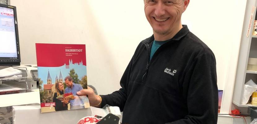 Die Leiterin der Tourist Information Halberstadt ist begeistert über so viel Initiative aus der Wirtschaft. „Eine enge Vernetzung zwischen Wirtschaft und Tourismus bereichert die gesamte Region“, betont Christiane Strohschneider. Mit Unterstützung des Halberstädter Druckhauses wurden über 2500 Imagebroschüren und Info-Flyer an den Media Markt in Halberstadt geliefert. Von hier aus treten sie nun gemeinsam mit Spielekonsolen, Haushaltsgeräten und neuester Technik ihren Weg an um Kunden in ganz Deutschland zu begeistern.