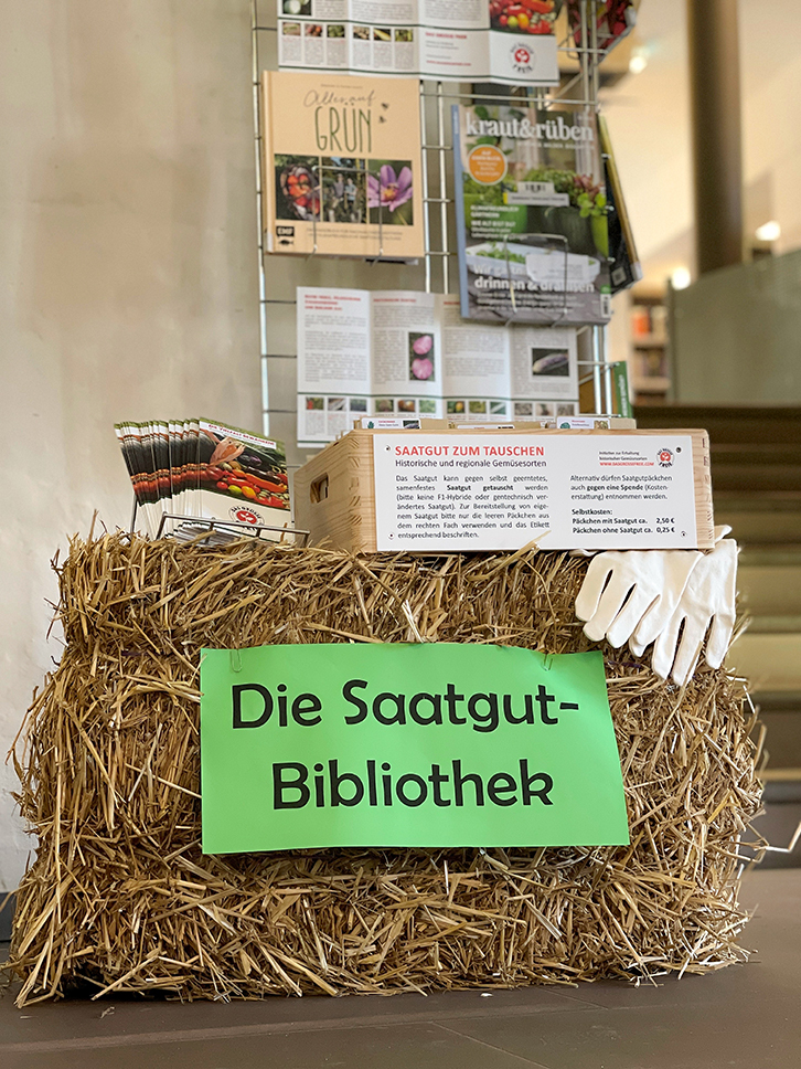 Die Idee der Saatgutbibliothek kommt von der Initiative „Das Große Freie“ zur Erhaltung historischer Gemüsesorten. Sie unterstützt die Stadtbibliothek mit der Lieferung der Samen.