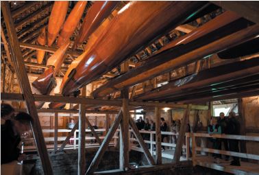 automatisch nach oben, und man ist überwältigt. Dort sind 100 Holzboote über- und nebeneinander so in