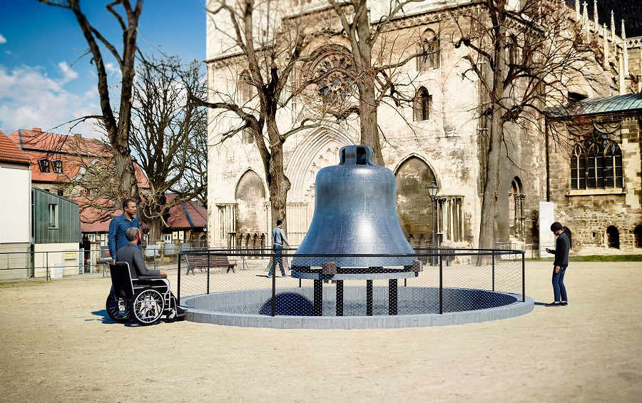 So könnte es aussehen: Visualisierte ausgestellte Glocke „Domina“ auf dem Domplatz in Halberstadt nach einem Entwurf des Planungsbüros Herbst Plan-Consult GmbH.