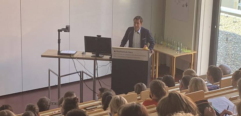 Für die Arbeit in der Stadtverwaltung Halberstadt warb Oberbürgermeister Daniel Szarata in seinem 10minütigen Vortrag sehr anschaulich und zeigte den Absolvent*innen welche neuen und interessanten Herausforderungen auf sie hier warten.