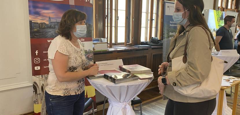 02 Kerstin Schmieder, Leiterin der Personalabteilung der Stadt Halberstadt beantwortet gern Fragen zu Praktika`s und Karrierechancen. Hier im Gespräch mit Studentin Lena Drewes.