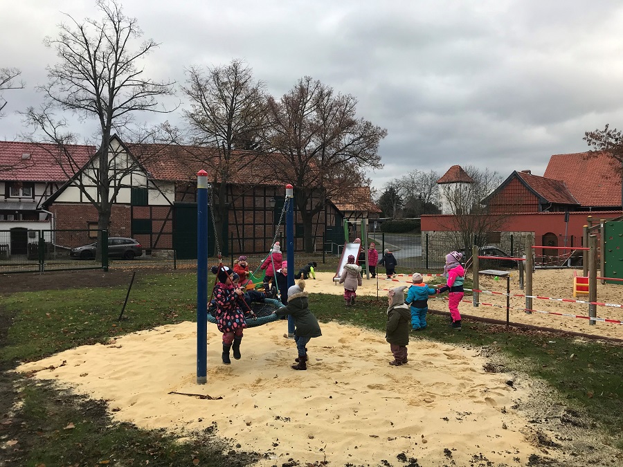 Die Kita „Spatzennest“ in Aspenstedt hat jetzt eine neu gestaltete, vergrößerte Außenanlage zum Spielen für die 24 Jungen und Mädchen, die dort betreut werden. Eine offizielle Eröffnung fand am 7. Dezember 2020 im Beisein von Ortsbürgermeister Rüdiger Müller und den an der Maßnahme Beteiligten (Stala, Stadtverwaltung, Kita-Förderverein) statt.