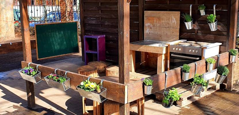Auch die bei den Kindern sehr beliebte Freiküche ist wieder „aufgehübscht“ worden und erfreut sich einer regen Nutzung.