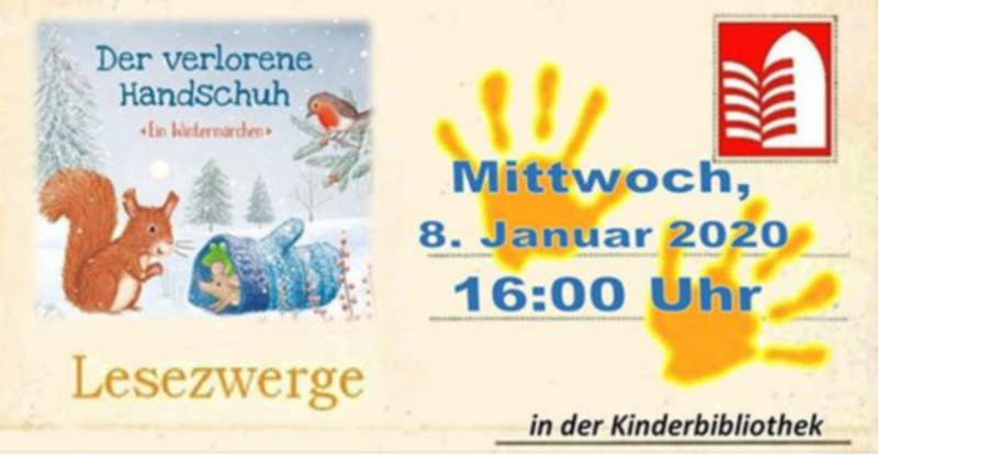 Auch im neuen Jahr begrüßt Margit Langer, Vorsitzende des Bibliotheksfördervereines, wieder die Allerkleinsten in der Stadtbibliothek. Am 8. Januar 2020 findet um 16.00 Uhr die beliebte Veranstaltungsreihe "Lesezwerge" statt. Sie präsentiert den jüngsten Zuhörern in der Halberstädter Kinderbibliothek die zauberhafte Bilderbuch-Geschichte "Der verlorene Handschuh" für Kinder ab zwei Jahren. Neben dem Vorlesen gibt es Zeit zum Malen, und natürlich können am Ende der Veranstaltung wieder Medien angeschaut und ausgeliehen werden.