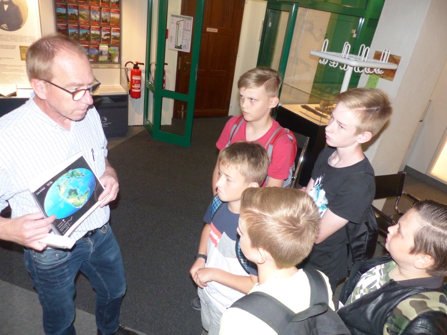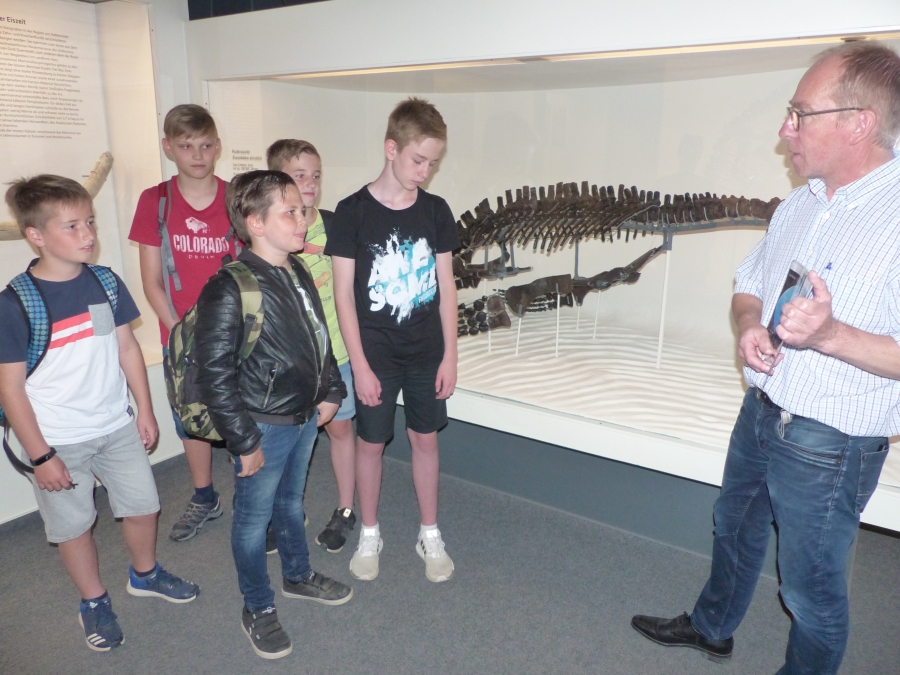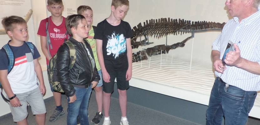 Bei ihrer Halberstadt Rallye am vergangenen Donnerstag (27. Juni 2019) besuchten Schüler des Gymnasiums Martineum unter anderem auch das Naturkundemuseum Heineanum. Dort berichtete Museumschef Rüdiger Becker vom Aussterben der Dinosaurier, die Plattenverschiebung, die Entstehung der Säugetiere und die Anfänge der Menschheit. Gestaunt haben die Sechstklässler darüber, dass der Plateosaurus vor rund 220 Millionen Jahren hier in der Gegend um Halberstadt gelebt hat.