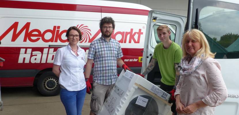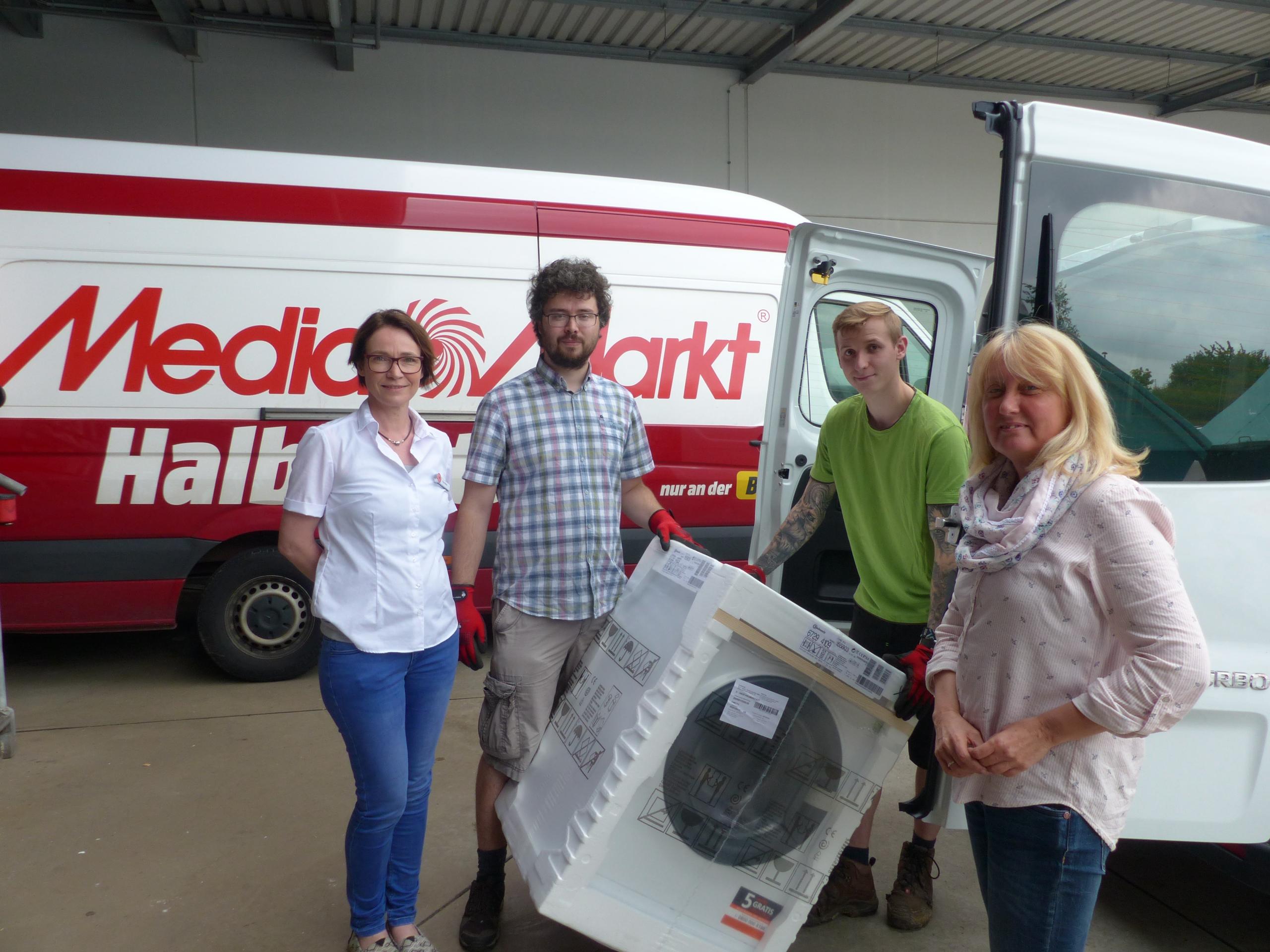 Eine Markenwaschmaschine im Wert von 299 Euro hat der Mediamarkt Halberstadt gestern (21. Mai 2019) an das Hundehaus im Tiergarten Halberstadt gespendet. Die Übergabe erfolgte direkt am Mediamarkt durch Anja Bors, Bereichsleiterin Weiße Ware. Die Idee, beim Mediamarkt anzufragen hatte Daniela Groß. Sie ist ehrenamtliche „Gassigängerin“ und betreut die Fundhunde im Tiergarten. „Die Hundedecken, die oft sehr schmutzig sind, werden zum Teil von den Mitarbeitern des Tiergartens selbst gewaschen oder bei extrem starker Verschmutzung weggeworfen“, berichtet Daniela Groß. Da sei ihr die Idee der Anschaffung einer Waschmaschine für diesen Zweck gekommen. Die Nachfrage beim Mediamarkt wurde sofort mit „Ja“ beantwortet. Das hat nicht nur sie, sondern auch den Tiergartenleiter David Neubert sowie Florian Hartmann, der für die Hunde zuständig ist, sehr gefreut.