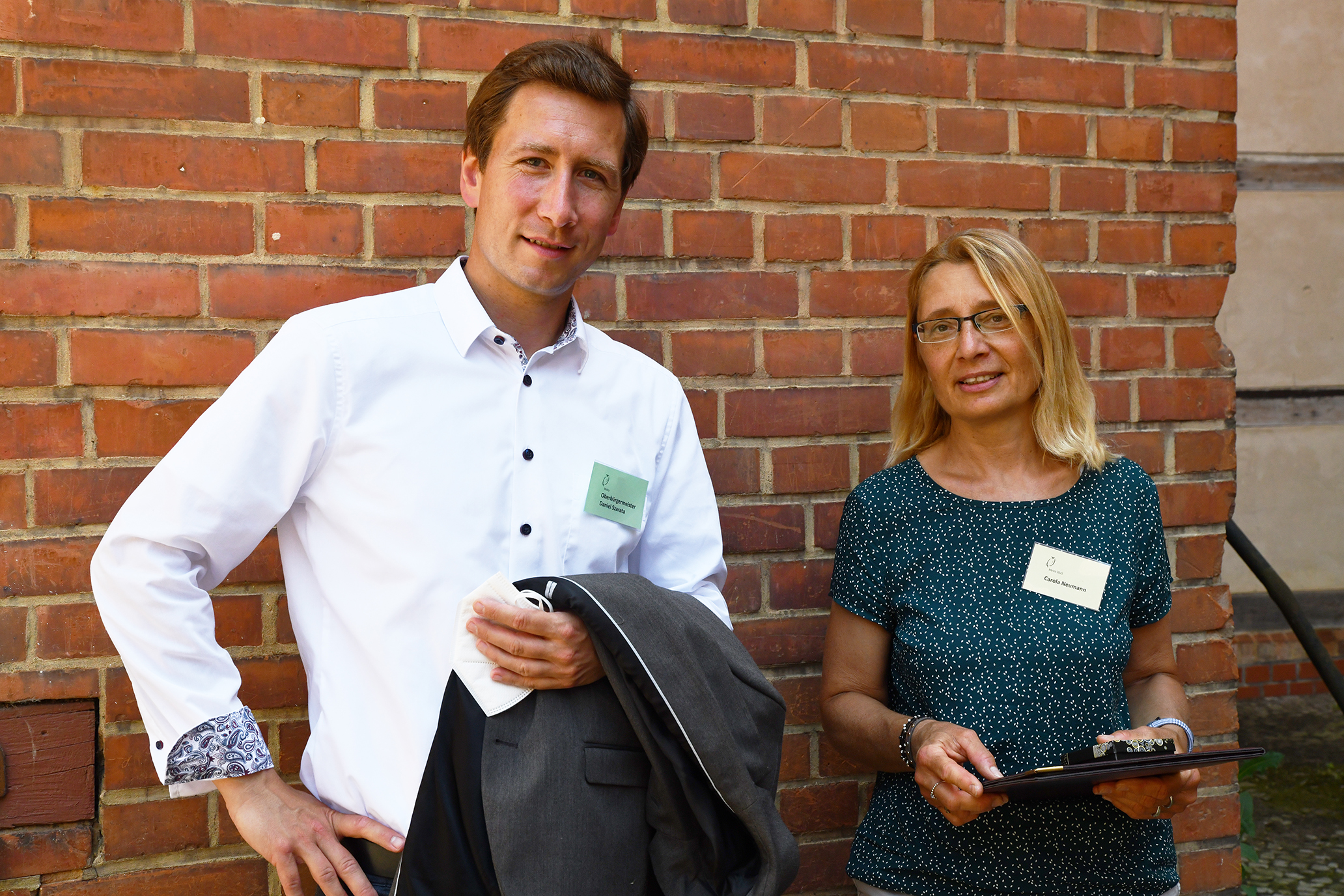 Oberbürgermeister Daniel Szarata mit der Preisträgerin Carola Neumann