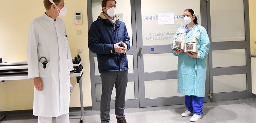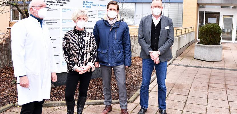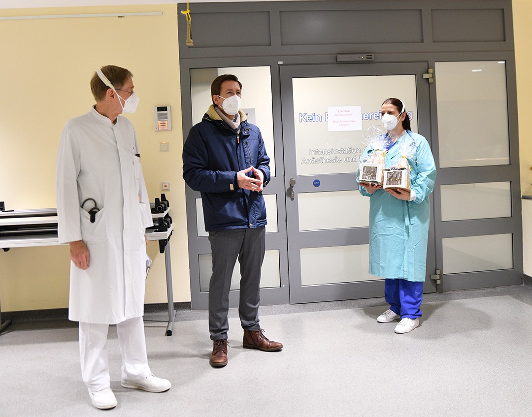Im Gespräch, bei dem auch Prof. Dr. med. Klaus Begall, Pflegedirektorin Beatrice Weiß und Krankenhausdirektor Stefan Fiedler zugegen waren, wurde deutlich, mit welchen Herausforderungen seit fast zwei Jahren im Krankenhaus umgegangen werden muss.