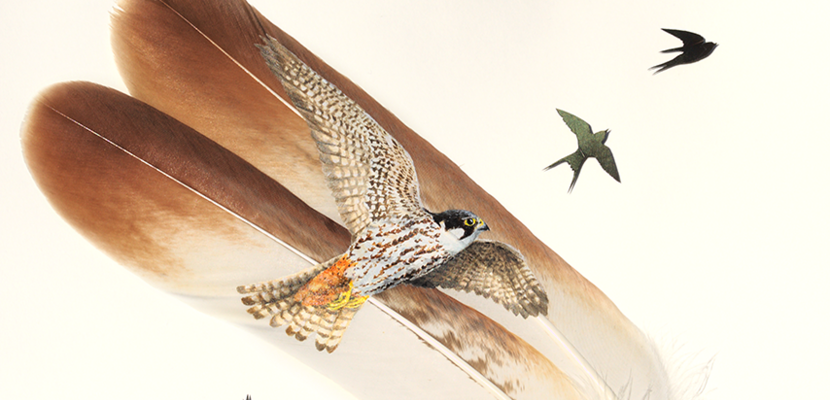 1. Das beliebteste Bild der Besucher in der 10. Ausstellung „Moderne Vogelbilder“: „Die Jagd“ (Acryl auf Feder, Mischtechnik, 45 x 32 cm, 2021) von Corinna Langebrake, Wilhelmshaven.