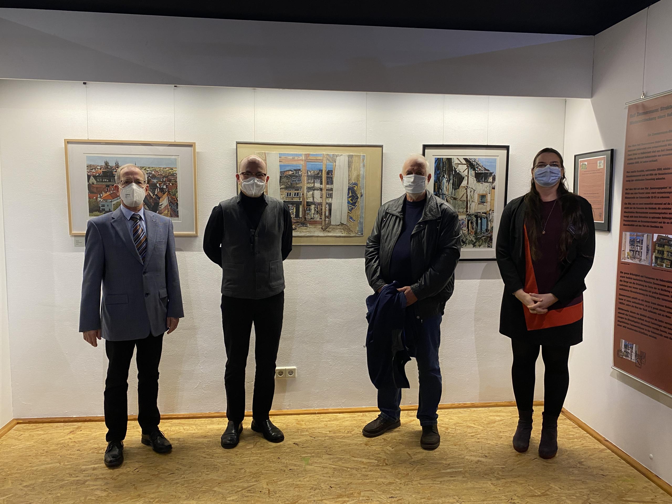 Bild 1: Dr. Volker Bürger, Dirk Wasmund (Sohn des Künstlers), Ronald Zimmermann (Bruder des Künstlers) und Dr. Antje Gornig eröffnen die Sonderausstellung