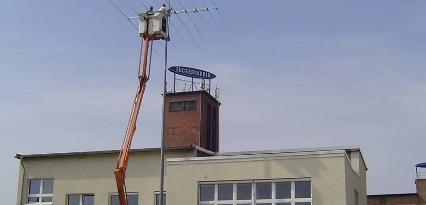 Foto 2: Aufbau der KW-Antenne in der Gröperstraße, Halberstadt
