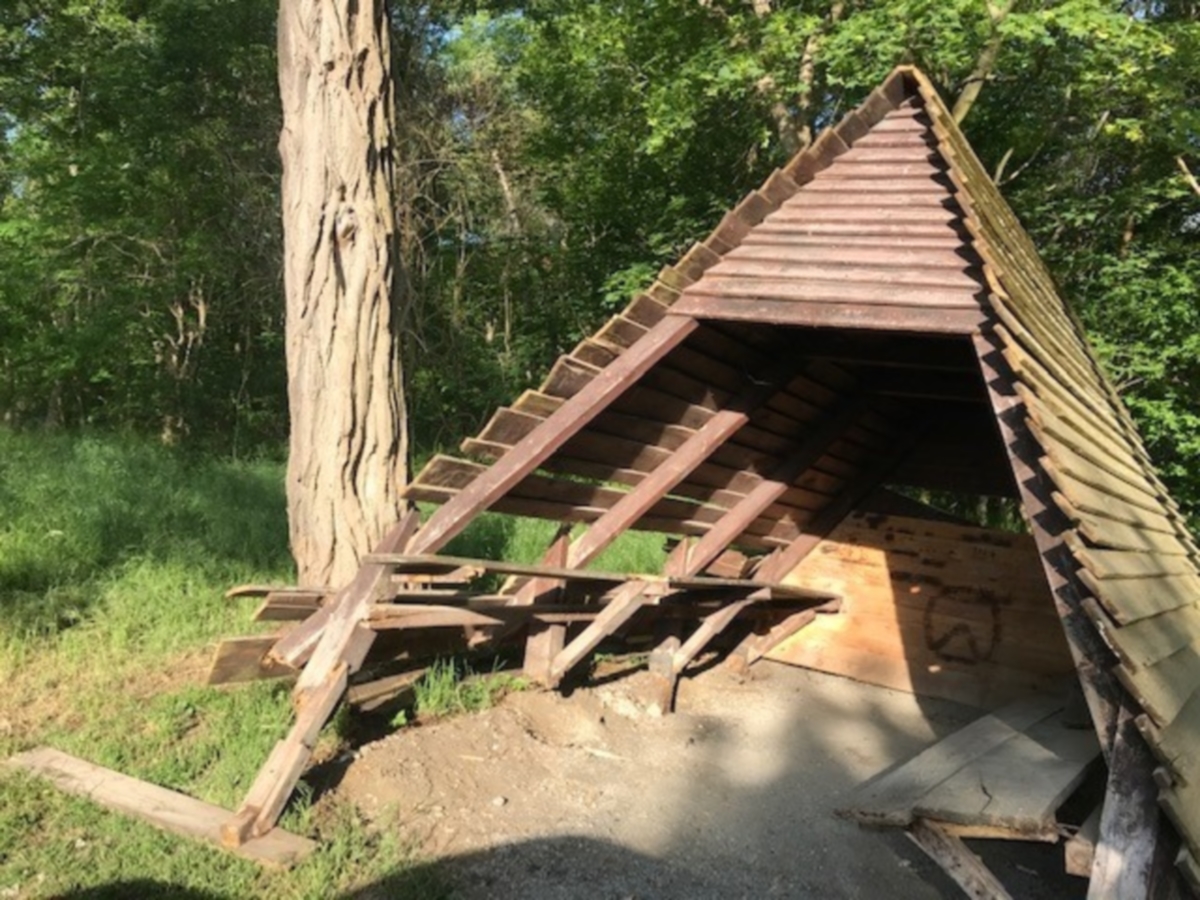 Die Schutzhütte am Harzklubweg / Höhe Lindenberg wurde mutwillig zerstört und kann nicht mehr repariert werden. Eine Anzeige wegen Sachbeschädigung hat die Stadt bei der Polizei gestellt.