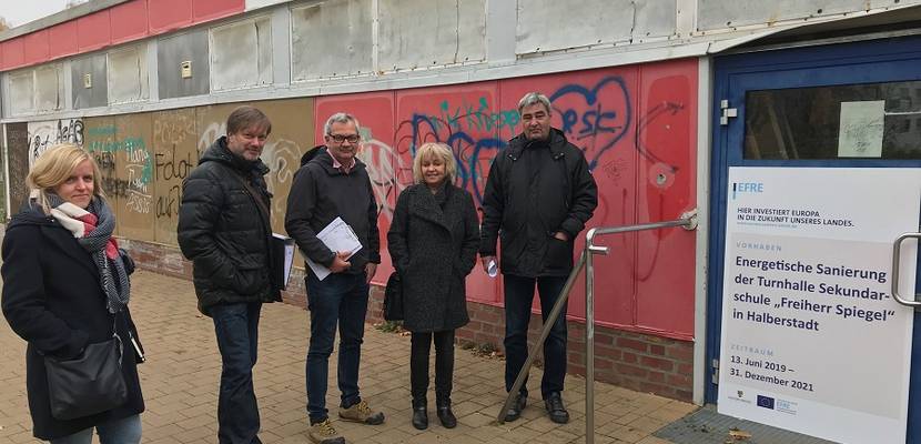 Die Energetische Sanierung der Turnhalle Sekundarschule ‘‘Freiherr Spiegel‘‘ in Halberstadt (Breitensport) erfolgt im Rahmen des Förderprogramms STARK III plus EFRE. Die Förderung wird auch aus Mitteln des Europäischen Fonds für regionale Entwicklung (EFRE) und aus Landesmitteln finanziert.