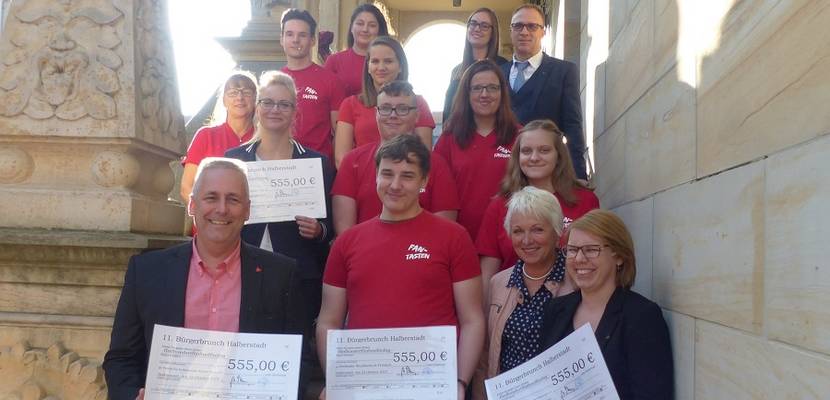 Der Spendenerlös des Bürgerbrunches ging an die Vereine Musikschule Fröhlich, Diakonisches Werk im Kirchenkreis e. V., Verbraucherzentrale Sachsen-Anhalt und den Verein für krebskranke Kinder. Ein Spendenscheck von jeweils 555 Euro wurde von Andreas Henke, Oberbürgermeister, übergeben. Mit dem Geld werden unterschiedliche Projekte der Vereine finanziell unterstützt.