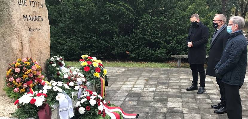 Stellvertretend für die Halberstädter Bürgerinnen und Bürger haben Stadtratspräsident Dr. Volker Bürger und Oberbürgermeister Andreas Henke zum Volkstrauertag am Sonntag in stillem Gedenken einen Kranz für die Kriegsopfer auf dem städtischen Friedhof niedergelegt. Darüber hinaus waren unter anderem Kränze von den Stadtratsfraktionen, der Gedenkstätte Langenstein Zwieberge, dem Verband der Reservisten der Deutschen Bundeswehr und dem Sozialverband Deutschland Kreisverband Halberstadt am Mahnmal für die Kriegsopfer niedergelegt worden. Auf Grund der Corona-Pandemie hatte man Abstand von einem gemeinsamen Gedenken mit den Bürgerinnen und Bürgern der Stadt genommen, was offensichtlich so auch akzeptiert worden war.